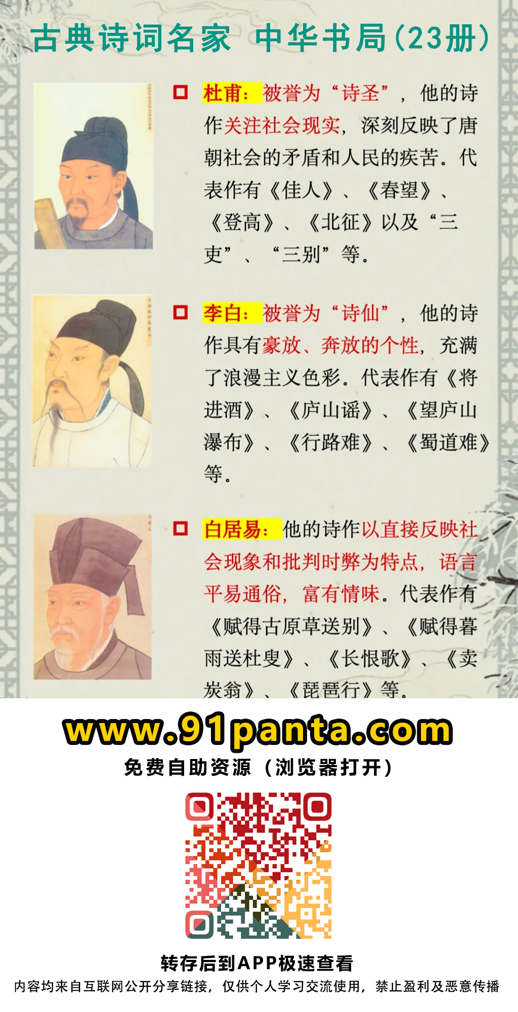 古典诗词名家 中华书局(23册)高清电子书📖学古文要从小培养,提高阅读量!移动云盘