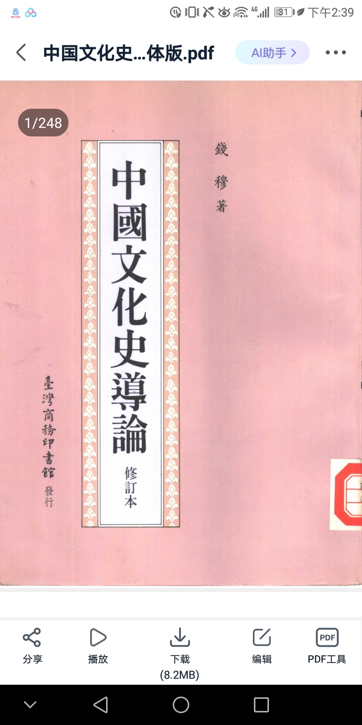 钱穆《中国文化史导论》PDF