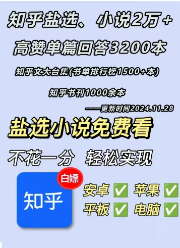 知乎盐选付费文章合集(20000付费小说+附3200单篇高赞回答+书单排行榜1500+书刊1000本)‼2024.11.28更新!移动云盘